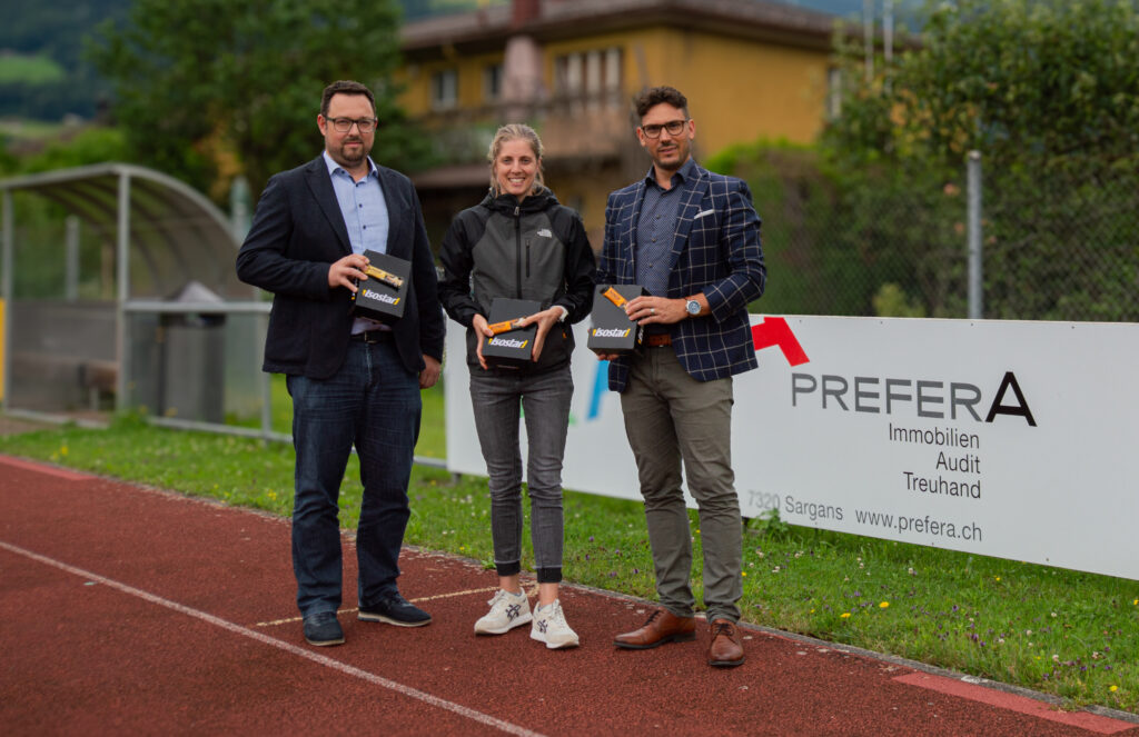 Wir feiern dieses Jahr unser 50-jähriges Bestehen. Aus diesem Anlass unterstützen wir die Sarganserländer Sportwoche mit einem Sonderbeitrag von CHF 5‘000.- und tragen somit zur Fortführung dieses traditionsreichen Events bei. Anstelle eines Schecks haben unser Markus Nadig, Verwaltungsratspräsident Audit, und unser Marco Bärtsch, Mitglied Geschäftsleitung Immobilien, Projektleiterin Bigna Gruber Sportriegel übergeben. Dank dieser sollen die rund 150 Leiterinnen und Leiter mit voller Energie in die Sportwoche starten können.