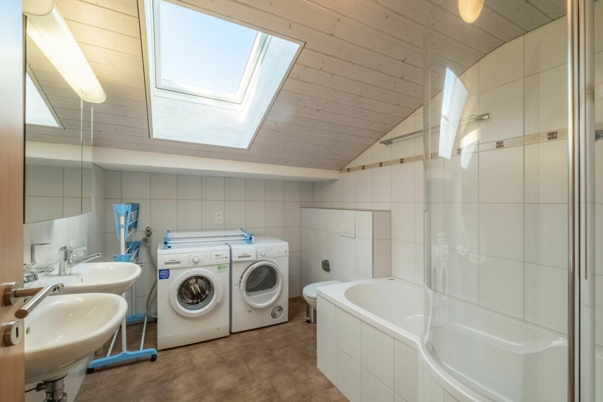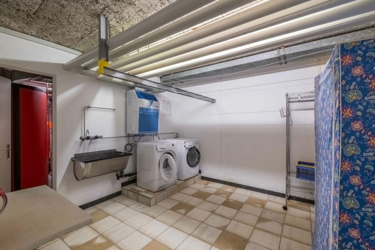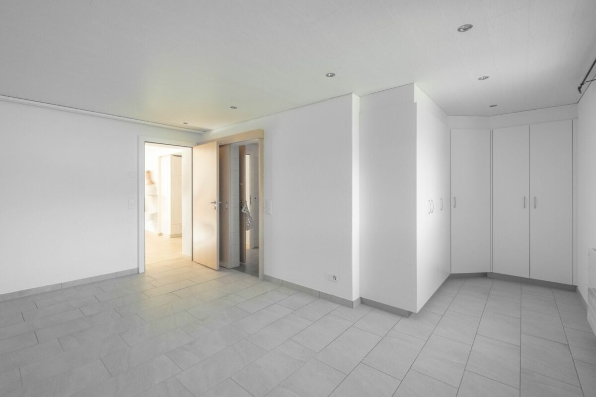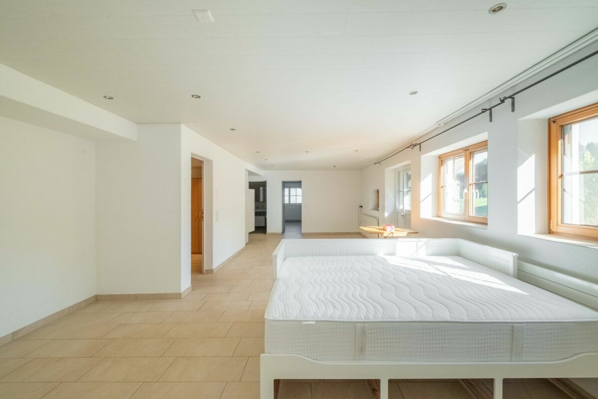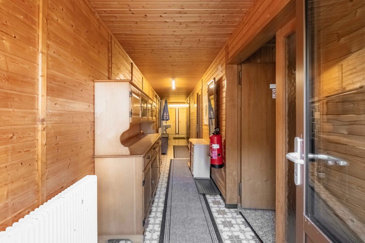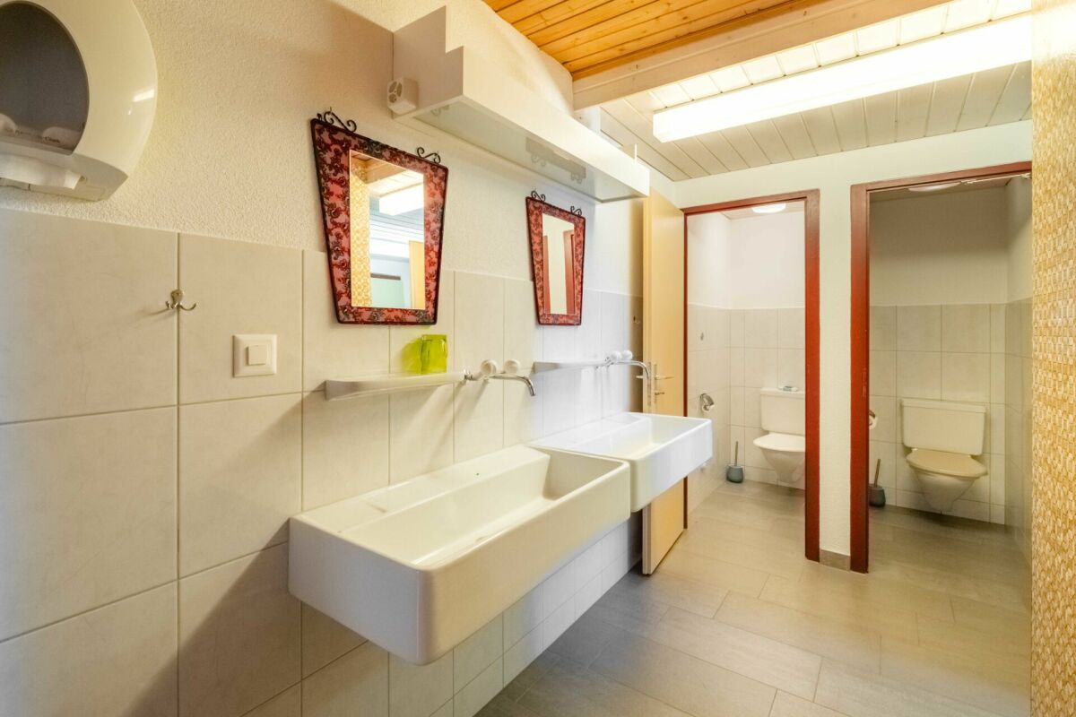 Im 1. Untergeschoss stehen zahlreiche Neben- und Lagerräume, Technikflächen, eine Garage sowie die ehemalige Wirtenwohnung (grosszügige 2 ½-Zimmer-Wohnung) zur Verfügung. Das 2. Untergeschoss bietet ein Massenlager mit Platz für 24 Personen sowie sanitäre Anlagen (WC und Duschen).