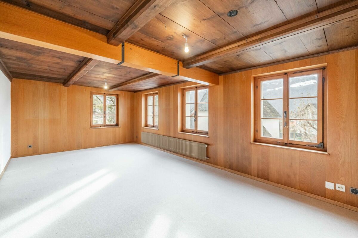 Die Immobilie ist sanierungsbedürftig und eröffnet kreativen Käufern die Möglichkeit, ein individuelles Zuhause mit historischem Charakter und modernen Annehmlichkeiten zu gestalten. Dank der sonnigen Lage und den hellen Räumen entsteht ein freundliches Wohngefühl, welches sich durch eine durchdachte Renovation noch verstärken lässt.
