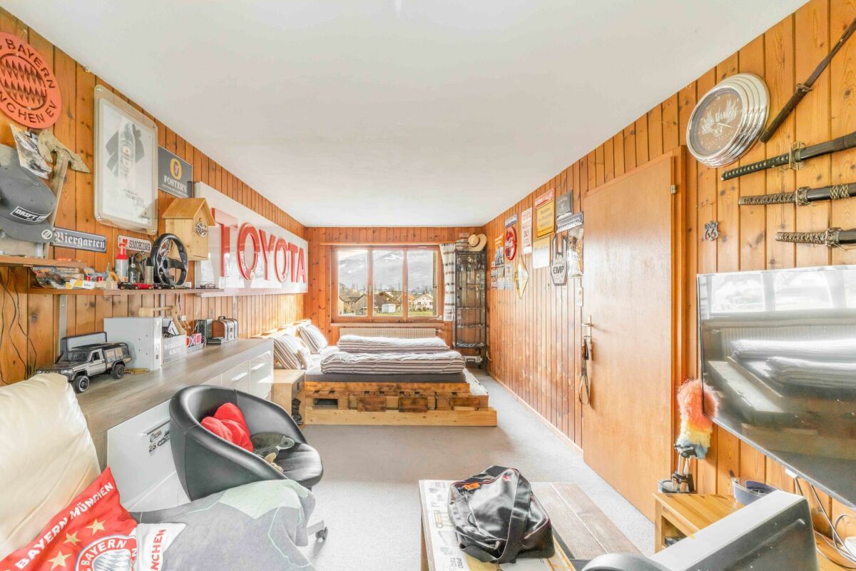 An der Dorfstrasse 5 in Tscherlach wartet eine einmalige Gelegenheit: Ein Doppeleinfamilienhaus aus dem Jahr 1980 mit viel Charme und grossem Entwicklungspotenzial. Die Liegenschaft befindet sich in der Kernzone und besticht durch ihre ruhige, äusserst sonnige Lage sowie hellen Räumen, welche eine angenehme Wohnatmosphäre schaffen.