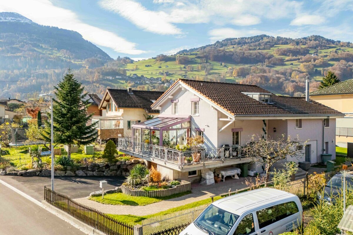 An der Grofstrasse 25 in Flums steht dieses charmante, freistehende Einfamilienhaus, das durch seine solide Bauweise, den liebevoll gepflegten Zustand und die praktischen Raumaufteilungen überzeugt. Dieses Haus bietet eine ideale Kombination aus Wohnkomfort, Nutzfläche und gemütlichem Ambiente, ideal für Familien und Bewohner, die Wert auf Individualität und Wohnen mit Charakter legen.