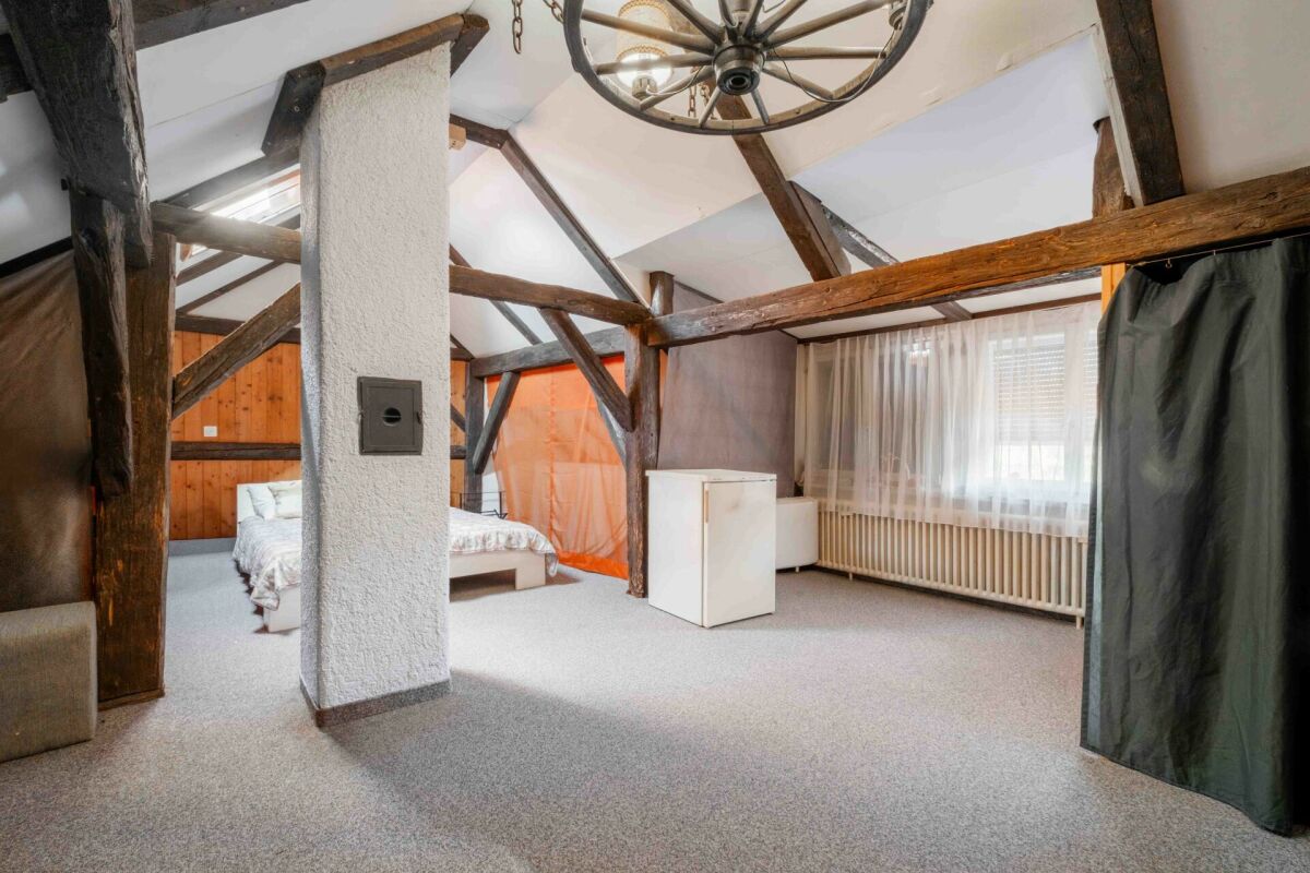 Das bestehende Gebäude umfasst zwei kompakte Wohneinheiten (einen 6-Zimmer-Hausteil sowie eine 4-Zimmer-Wohnung), die derzeit vermietet sind. Dadurch bietet sich für Käufer die Möglichkeit, die Liegenschaft zunächst weiterhin zu betreiben und von laufenden Mieteinnahmen zu profitieren, während gleichzeitig zukünftige Entwicklungsschritte geplant werden.