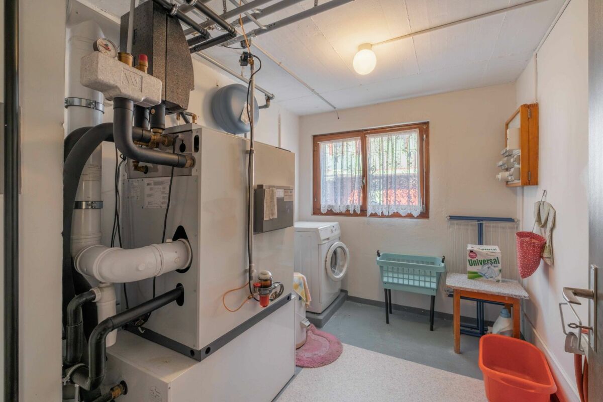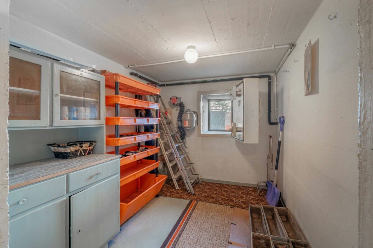 Die übrigen Nebenräume im Erdgeschoss bieten nützlichen Stauraum und beherbergen Gebäudetechnik inkl. Öl-Heizung sowie einen Luftschutzkeller. Zur sicheren Unterbringung eines Fahrzeuges steht ebenfalls eine grosszügige und beheizte Garage zur Verfügung.