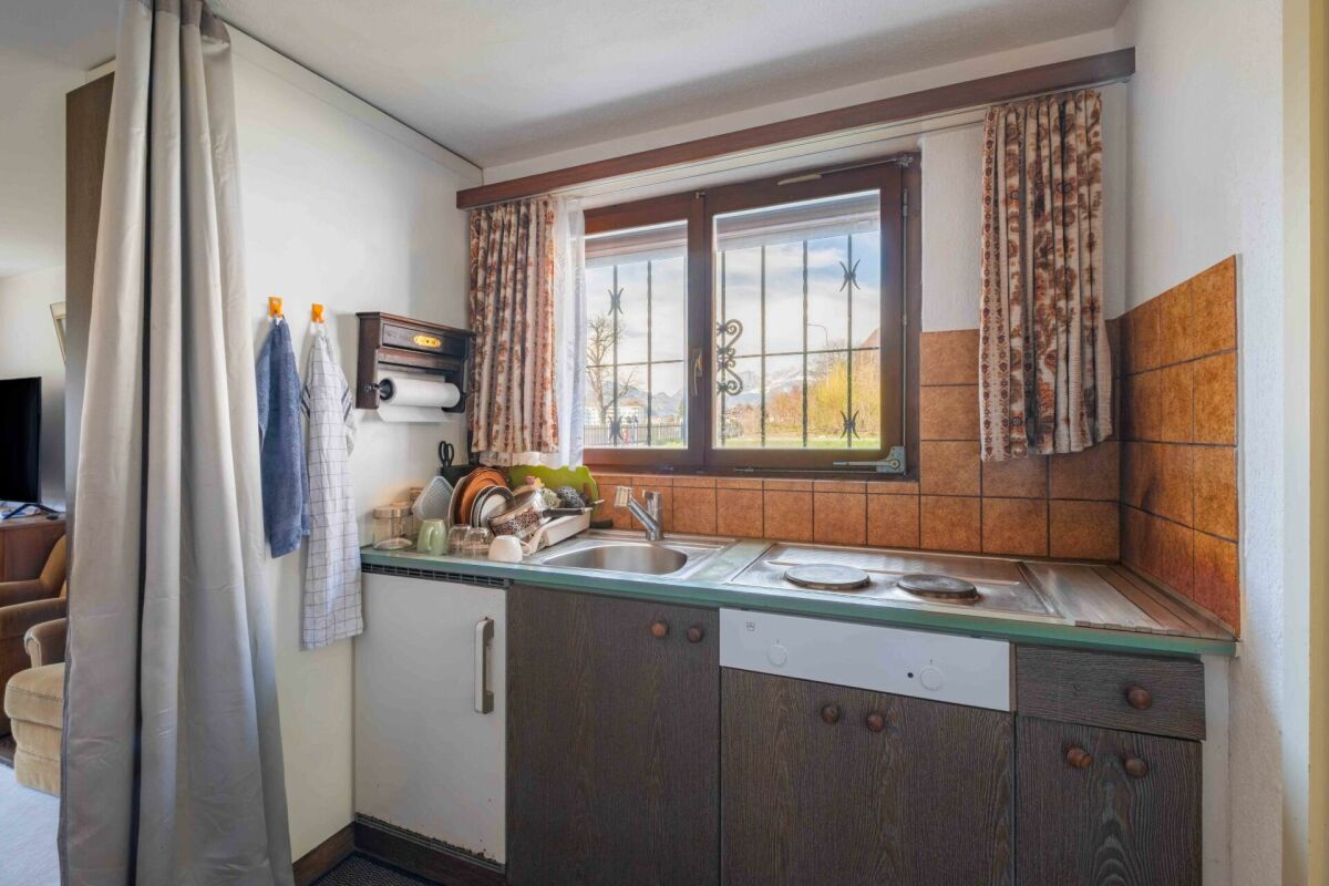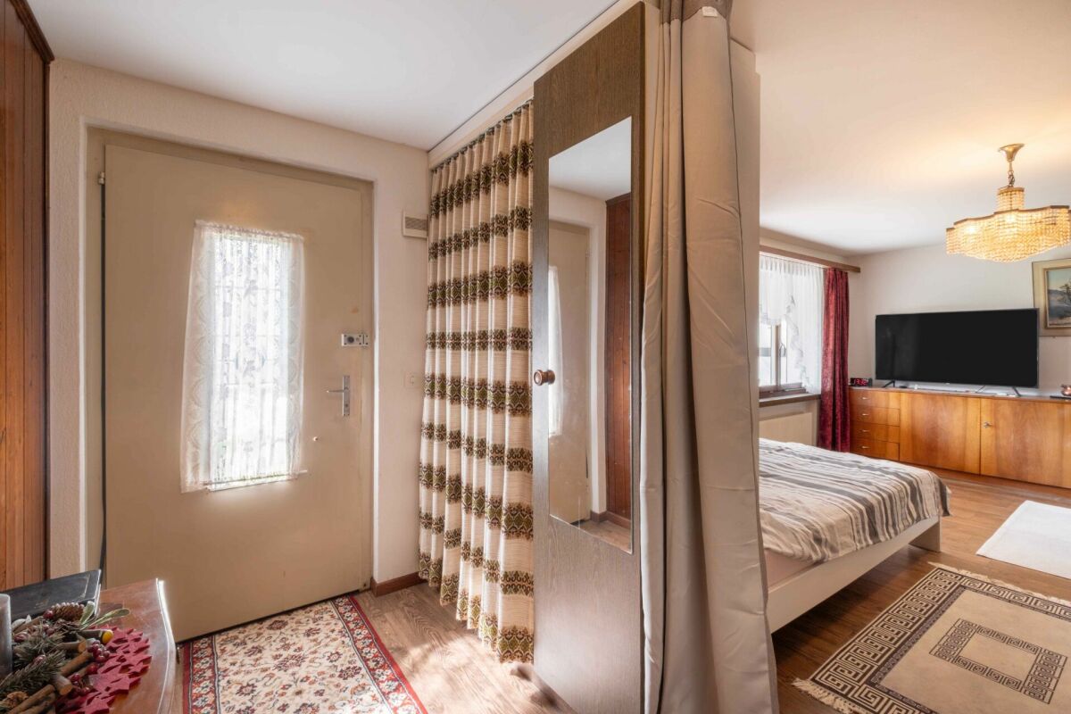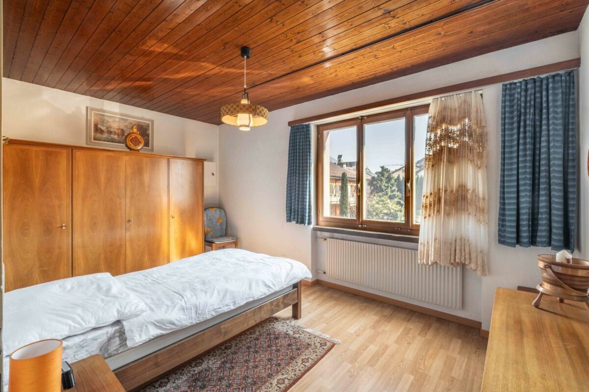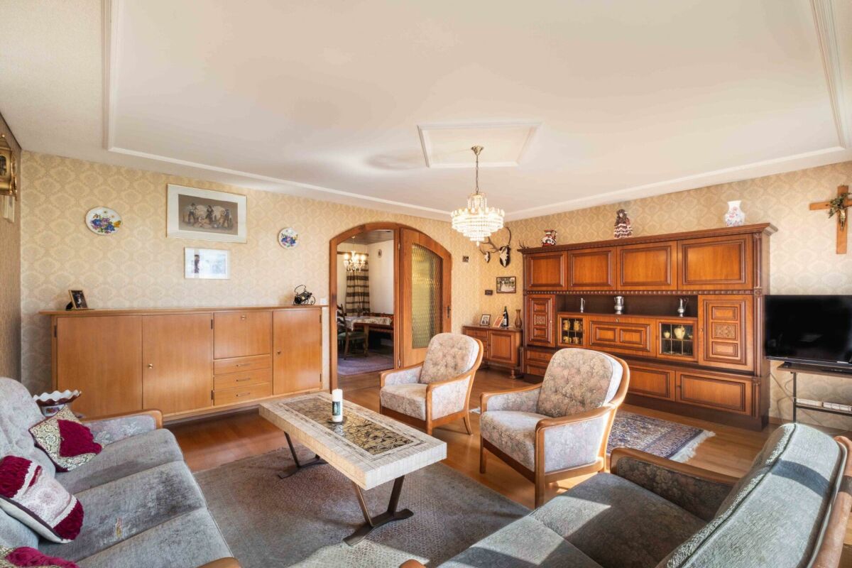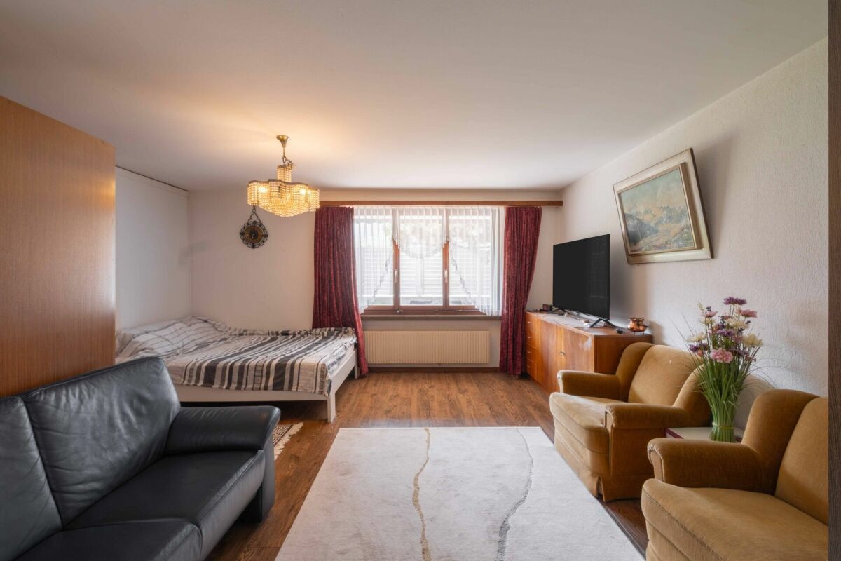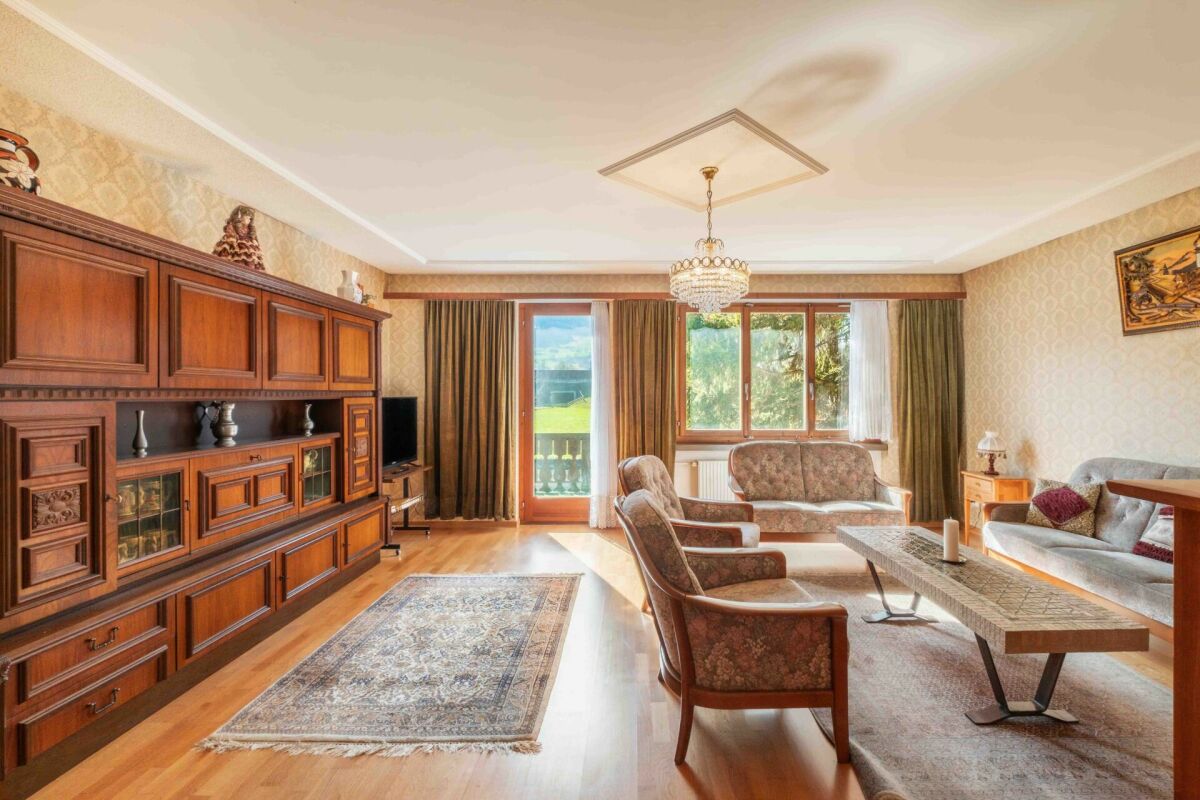 Bereits beim Betreten des Hauses spüren Sie das Potenzial: Die Zimmer sind angenehm grosszügig geschnitten und schaffen eine warme, einladende Wohnatmosphäre. Das Wohnzimmer präsentiert sich besonders gemütlich und bietet viel Platz für gemeinsame Stunden – von hier aus gelangen Sie direkt auf die Terrasse, wo sich entspannte Momente im Freien und eine traumhafte Aussicht auf die umliegende Bergwelt geniessen lassen.