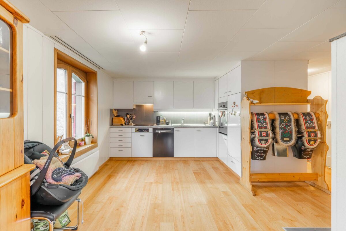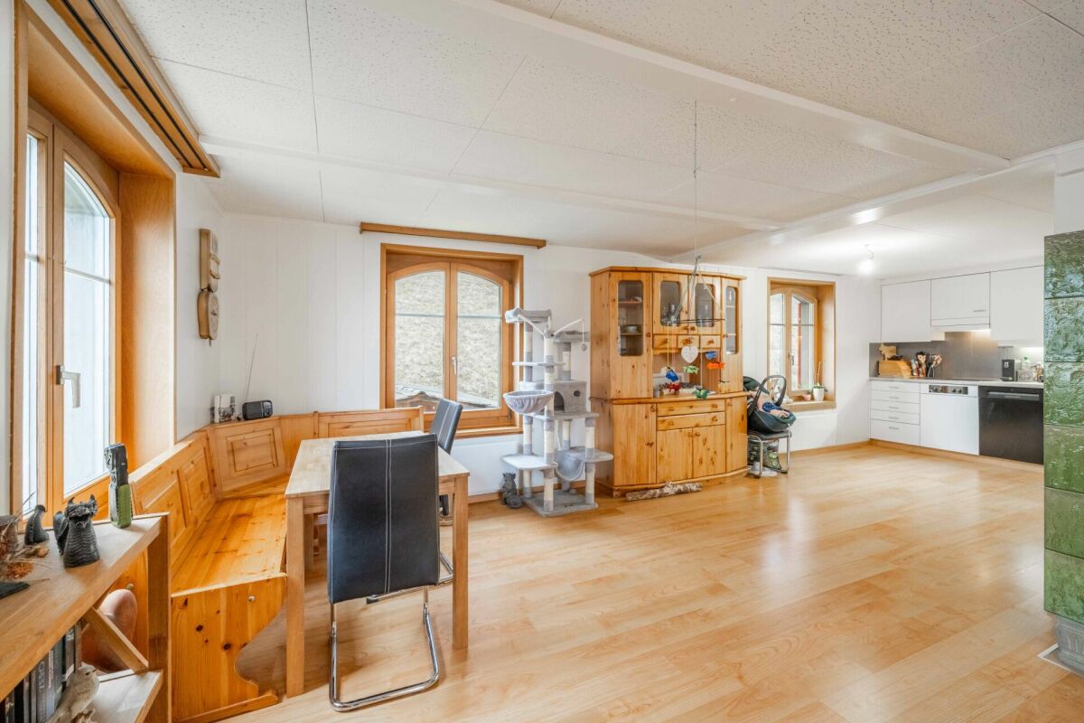 Die 3.5-Zimmer-Wohnung befindet sich im 1. Obergeschoss einer charakteristischen Altliegenschaft an der Melserstrasse 9 in Wangs. Sie besticht durch ihren behaglichen Wohncharakter, zahlreiche praktische Nebenräume sowie die Mitbenutzung des grossen Gartens.